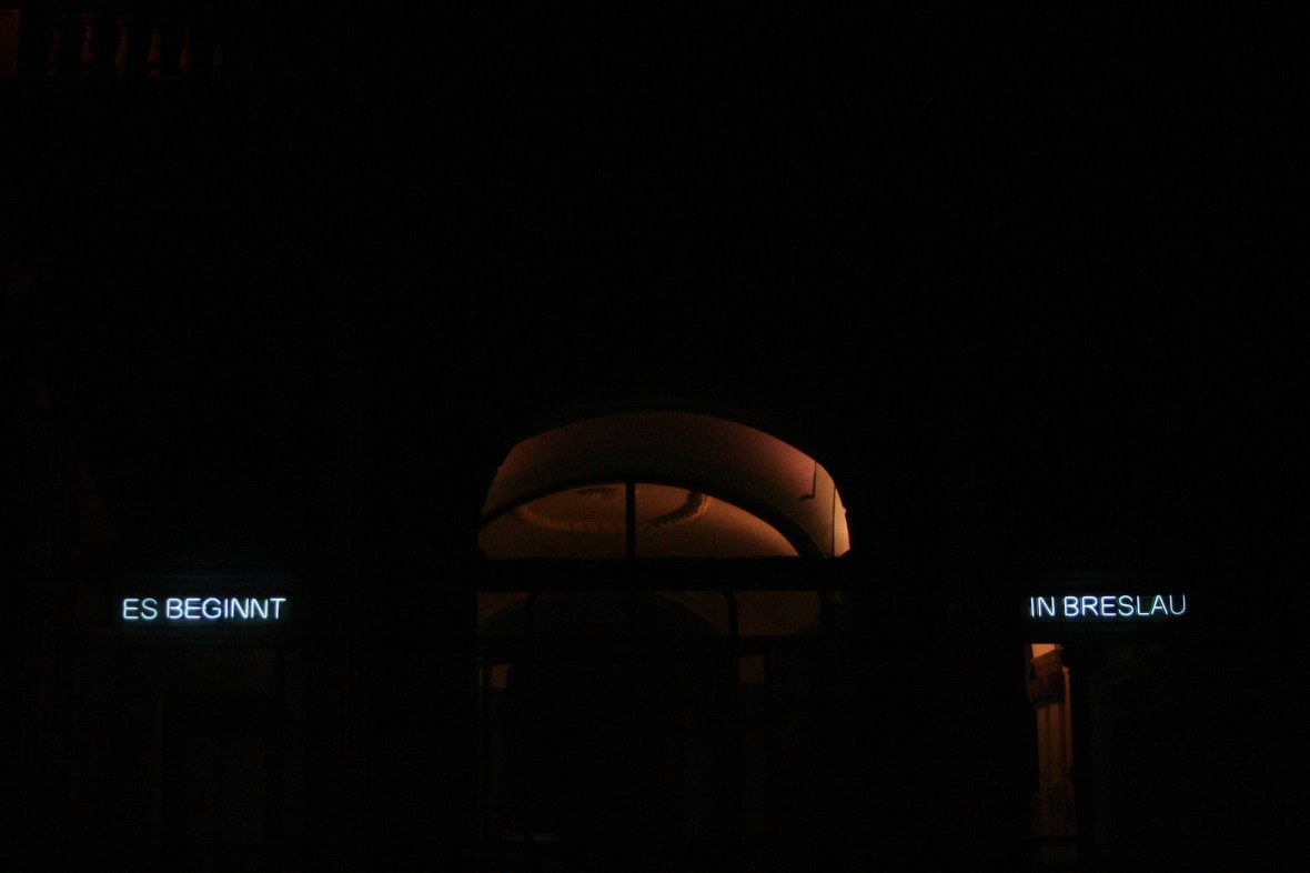 July 20, 2016 Es beginnt in Breslau Rafał Jakubowicz, Es beginnt in Breslau, Galeria Awangarda, Wrocław 2008 (Work can be found in the collection of the Dolnośląskie Towarzystwo Zachęty Sztuk Pięknych). Neon, installation on façade of gallery building. Courtesy and © the artist.